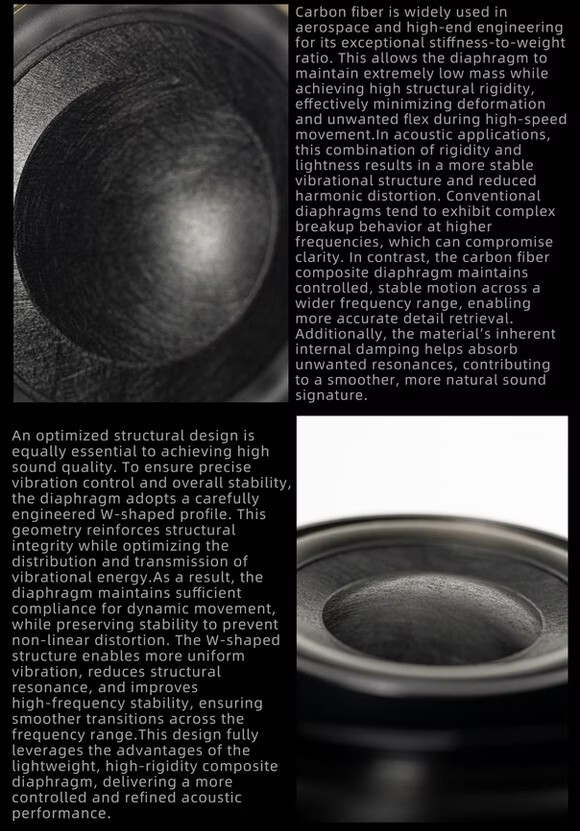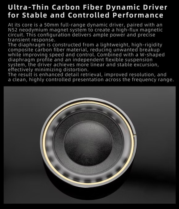 Driver: Dynamic driver with an ultra-thin carbon fiber diaphragm and flexible surround suspension