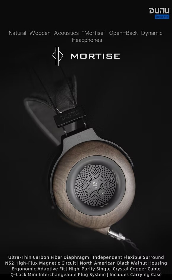 DUNU - MORTISE Opened-Back Headphones | Ultra-Thin Carbon Fiber Diaphragm | N52 High-Flux Magnetic Circuit | High-Purity Single-Crystal Copper Cable | Q-Lock Mini Interchangeable Plug System