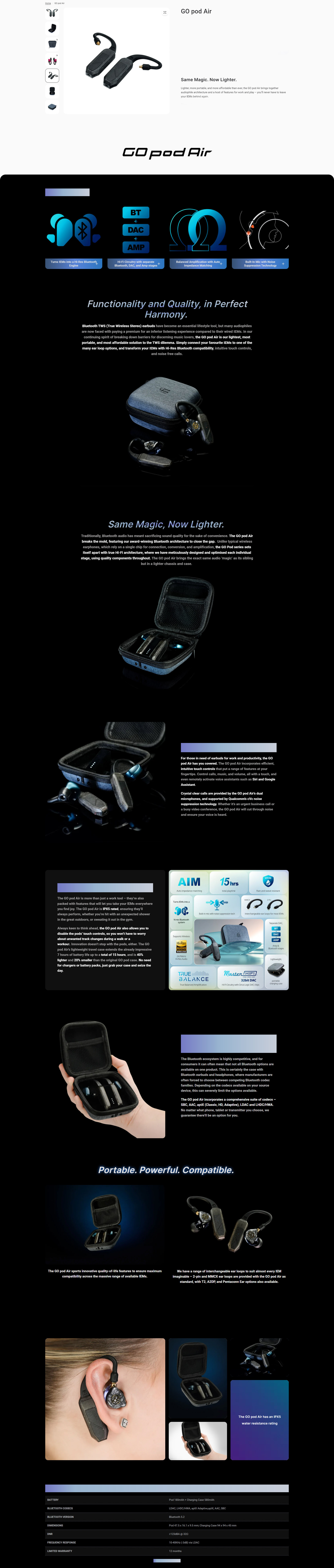 Lighter, more portable, and more affordable than ever, the GO pod Air brings together audiophile architecture and a host of features for work and play – you’ll never have to leave your IEMs behind again.