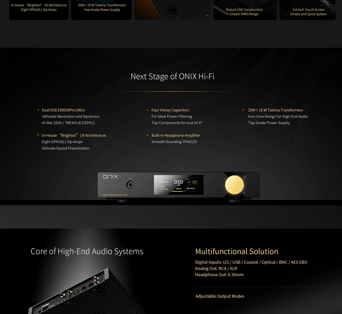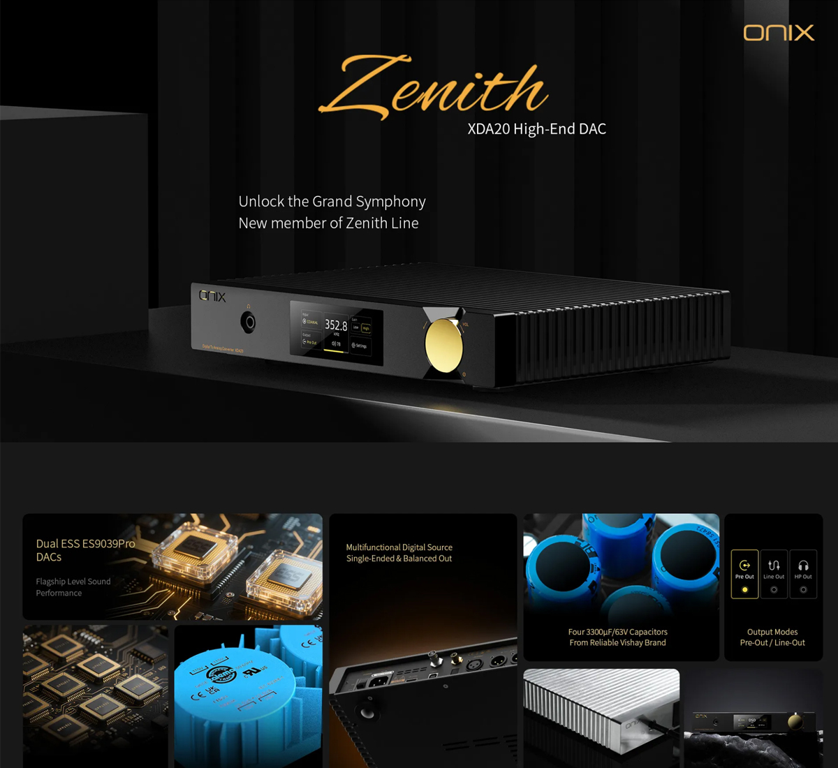ONIX Zenith XDA20 枱式解碼器以雙 ES9039PRO 為基礎,融合全分立模擬輸出與線性供電架構,將音質的控制力與系統的穩定性提升至更高水準。