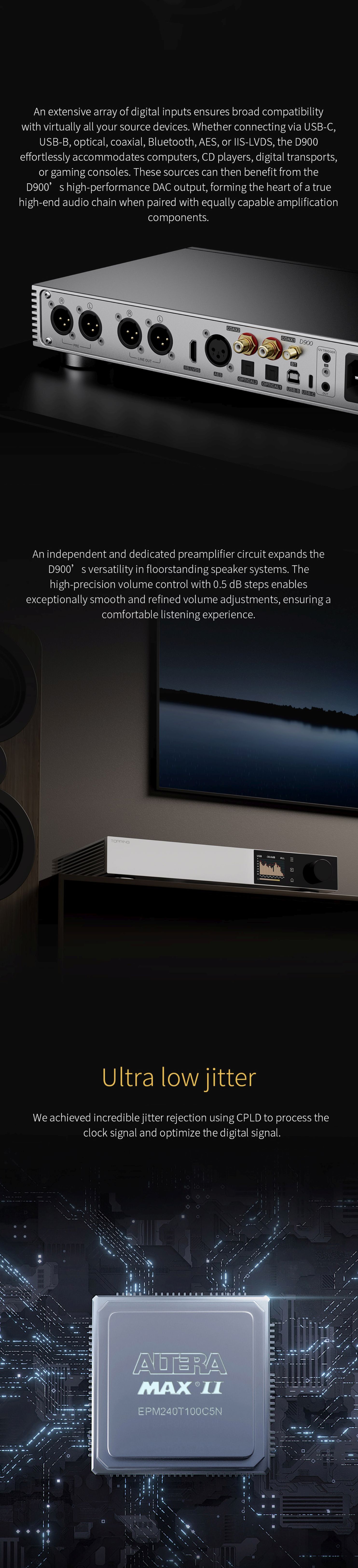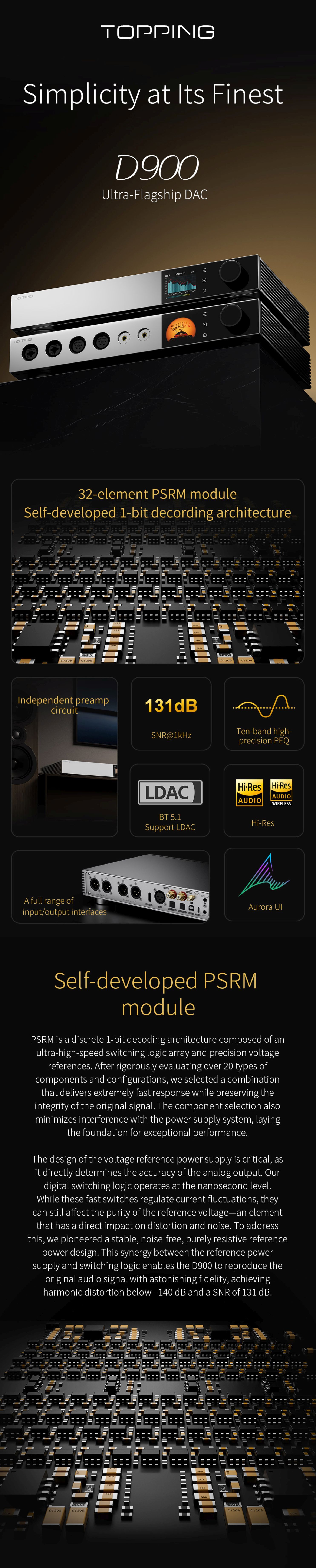 TOPPING - D900 頂級全平衡座枱式純解碼 | 32相PSRM離散式1Bit解碼模組 | PEQ 10段高精度軟件調音功能 | I2S輸入 | 獨立前級線路 | LDAC, aptX adaptive 高清藍牙接收
